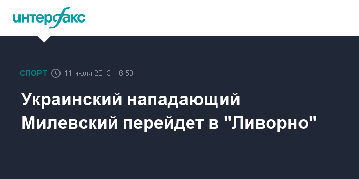 Москва. 11 июля. INTERFAX.RU - Нападающий сборной Украины и киевского "Динамо" Артем Милевский в ближайшее время станет игроком итальянского "Ливорно".