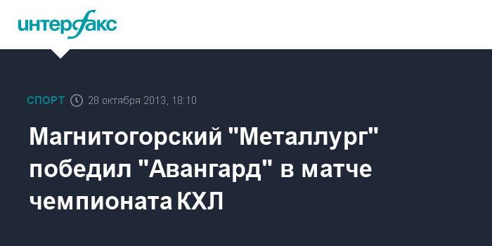 Омск. 28 октября. INTERFAX.RU - Магнитогорский "Металлург" в Омске обыграл "Авангард" в матче очередного тура регулярного чемпионата Континентальной хоккейной лиги .