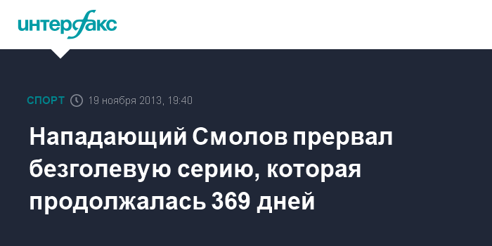 Мяч, забитый Смоловым, стал для него первым за последние 369 дней.