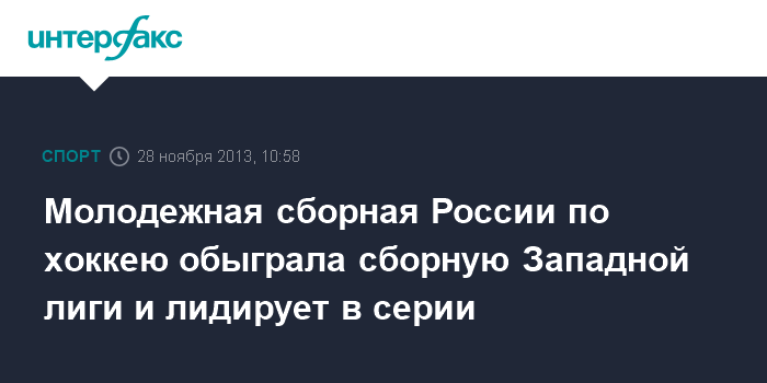 Ред-Дир (Канада). 28 ноября. INTERFAX.RU - В пятом матче суперсерии Subway Series молодежная сборная России по хоккею победила сборную Западной лиги со счетом 3:2.