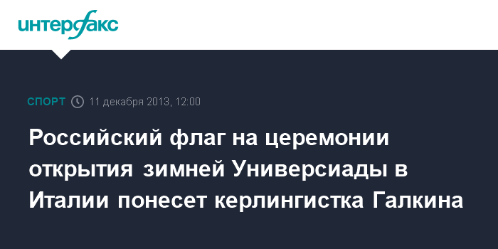 Трентино (Италия). 11 декабря. INTERFAX.RU - Участница двух Олимпийских игр, двукратная чемпионка Европы по керлингу, трехкратный призер Универсиад Екатерина Галкина в среду понесет флаг России на церемонии открытия XXVI Всемирной зимней Универсиады в итальянском Трентино.