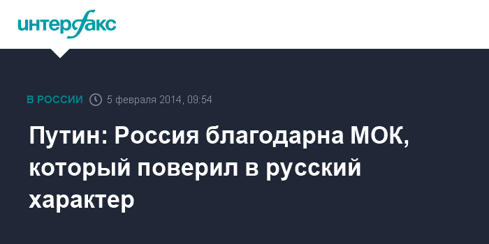 Путин: Россия благодарна МОК, который поверил в русский характер