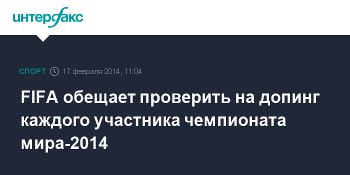 Москва. 17 февраля. INTERFAX.RU - Международная федерация футбола обещает, что все без исключения игроки, принимающие участие в чемпионате мира в Бразилии, пройдут проверку на допинг. Все участники предстоящего первенства сдадут допинг-тесты перед первым матчем Мундиаля.