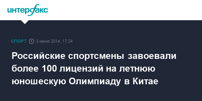 Москва. 3 июня. INTERFAX.RU - Сборная России завоевала 111 лицензий по итогам отбора на II летние юношеские Олимпийские игры, информирует "Весь Спорт".