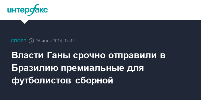 Москва. 25 июня. INTERFAX.RU - Футболисты сборной Ганы получат причитающиеся им премиальные до начала заключительного матча группового турнира чемпионата мира против Португалии.