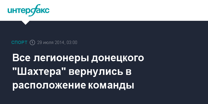 Москва. 29 июля. INTERFAX.RU - Все легионеры донецкого "Шахтера" вернулись в расположение команды.