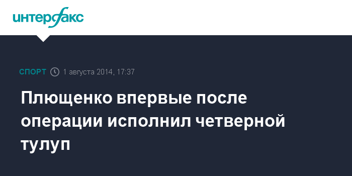 Москва. 1 августа. INTERFAX.RU - Двукратный олимпийский чемпион по фигурному катанию Евгений Плющенко сообщил, что впервые после операции смог исполнить четверной тулуп.