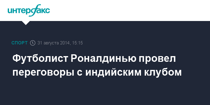 Москва. 31 августа. INTERFAX.RU - Чемпион мира 2002 года 34-летний бразилец Роналдинью может продолжить карьеру в индийском "Ченнаи", сообщил один из владельцев клуба Прашант Агарвал.