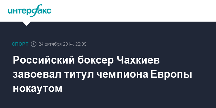 Москва. 24 октября. INTERFAX.RU - Чемпион Олимпийских игр 2008 года в Пекине, 31-летний российский боксер Рахим Чахкиев, выступающий на профессиональном ринге в первом тяжелом весе, победил в Москве экс-чемпиона мира, 42-летнего итальянца Джакобо Фрагомени нокаутом в четвертом раунде и завоевал вакантный титул чемпиона Европы по версии Европейского боксерского союза (EBU).
