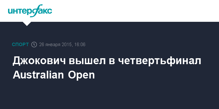 Москва. 26 января. INTERFAX.RU - Сербский теннисист Новак Джокович завоевал путевку в 1/4 финала Открытого чемпионата Австралии.