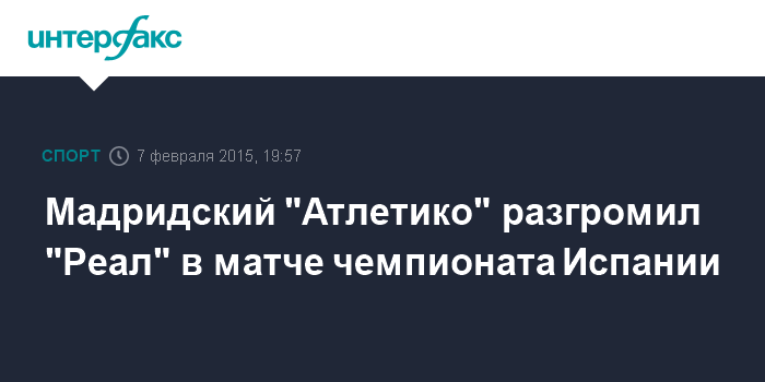 Москва. 7 февраля. INTERFAX.RU - Мадридский футбольный клуб "Атлетико" в 22-м туре чемпионата Испании разгромил "Реал" со счетом 4:0.