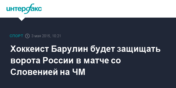 Хоккеист Барулин будет защищать ворота России в матче со Словенией на ЧМ