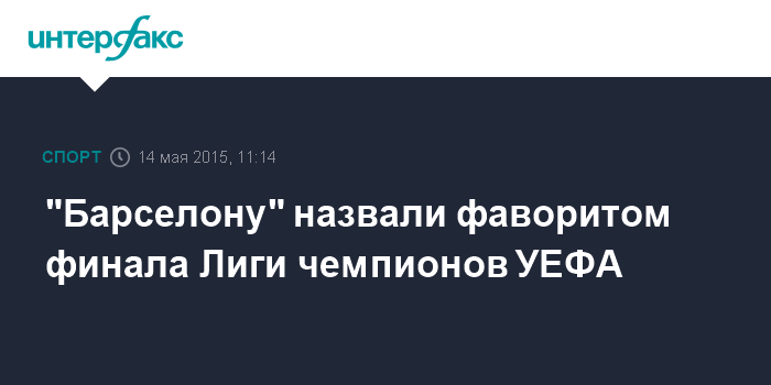 Москва. 14 мая. INTERFAX.RU - Испанская "Барселона" является фаворитом финального матча Лиги чемпионов УЕФА с итальянским "Ювентусом", свидетельствуют котировки британской букмекерской конторы William Hill.