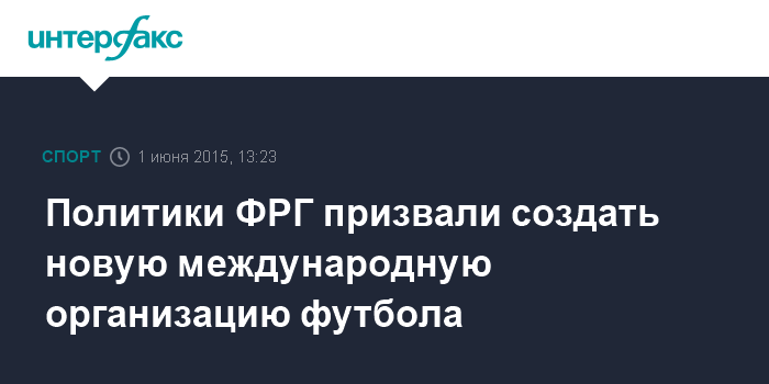 Москва. 1 июня. INTERFAX.RU - Политики ФРГ призвали создать новую международную организацию футбола (WFA) после переизбрания на пятый срок президента Международной федерации футбола (ФИФА) Йозефа Блаттера, сообщает Deutsche Welle.