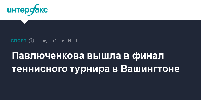 Москва. 9 августа. INTERFAX.RU - Российская теннисистка Анастасия Павлюченкова пробилась в финал турнира в Вашингтоне. В полуфинале она играла со своей соотечественницей Екатериной Макаровой, которая отказалась от продолжения борьбы при счете 1:1 по сетам.
