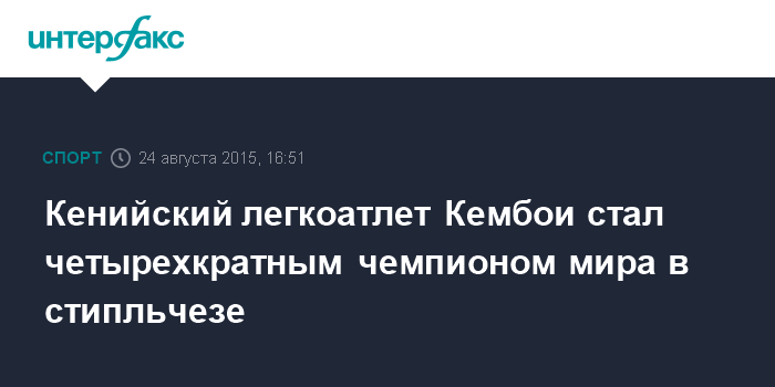 Москва. 24 августа. INTERFAX.RU -Кениец Эзекиель Кембои выиграл забег на 3000 метров с препятствиями (стипльчез) на чемпионате мира по легкой атлетике.