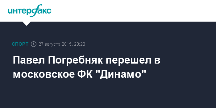 Москва. 27 августа. INTERFAX.RU - Московский футбольный клуб "Динамо" объявил о подписании контракта с 31-летним российским нападающим заслуженным мастером спорта России Павлом Погребняком.