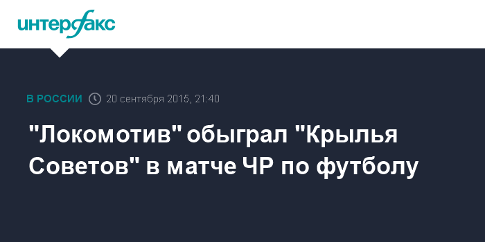 Москва. 20 сентября. INTERFAX.RU - Футболисты московского "Локомотива" победили "Крылья Советов" в домашнем матче девятого тура российской премьер-лиги.
