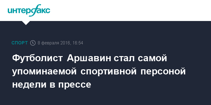 Москва. 8 февраля. INTERFAX.RU - Футболист Андрей Аршавин, по данным системы "СКАН-Интерфакс", возглавил топ-10 самых упоминаемых российских спортсменов в первую неделю февраля 2016 года. В период с 1 по 7 февраля Аршавин получил 835 упоминаний в материалах различных российских СМИ.