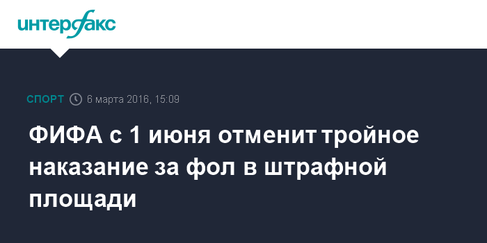 Москва. 6 марта. INTERFAX.RU - Президент ФИФА Джанни Инфантино разъяснил, что правило об отмене тройного наказания за фол в штрафной площади будет отменено с 1 июня, испытательный срок нововведения составит два года.