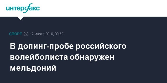 Москва. 17 марта. INTERFAX.RU - Российский волейболист, имя которого не называется, провалил допинг-тест на мельдоний, сообщает портал WorldofVolley в четверг.