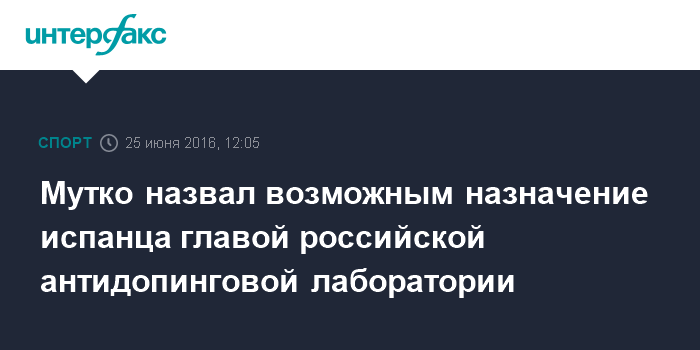 Москва. 25 июня. INTERFAX.RU - Российскую антидопинговую лабораторию может возглавить испанский специалист, заявил министр спорта РФ Виталий Мутко.