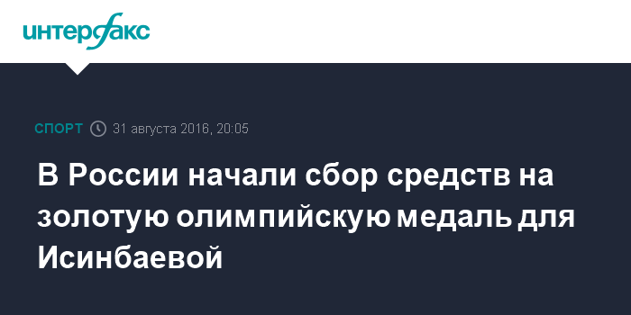 Москва. 31 августа. INTERFAX.RU - В Ульяновской области началась акция по сбору денег на отлив золотой медали Олимпийских Игр-2016 для отстраненной от участия в соревнованиях российской легкоатлетки Елены Исинбаевой.