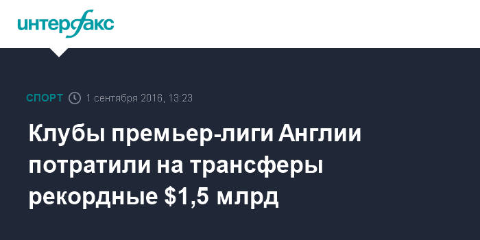 Москва. 1 сентября. INTERFAX.RU - Команды английской футбольной премьер-лиги потратили на трансферы рекордные 1,165 млрд фунтов стерлингов ($1,53 млрд) в летнее трансферное окно, закрывшееся в ночь на четверг, сообщает "Би-би-си".