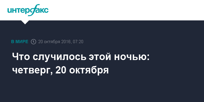 Москва. 20 октября. INTERFAX.RU - Краткая сводка событий, произошедших к утру: