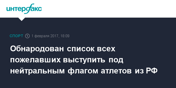 Обнародован список всех пожелавших выступить под нейтральным флагом атлетов из РФ