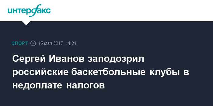 Сергей Иванов заподозрил российские баскетбольные клубы в недоплате налогов