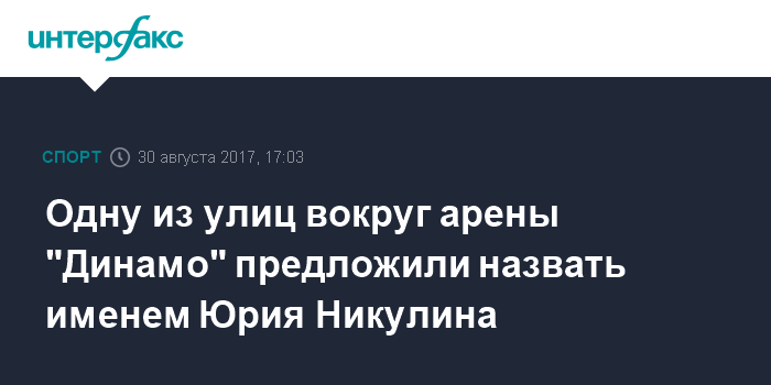 Москва. 30 августа. INTERFAX.RU - Отобрано 12 вариантов наименований для трех улиц, которые проектируются в рамках комплексной реконструкции Центрального стадиона "Динамо", сообщает пресс-служба "ВТБ Арена парка". Среди вариантов - имя знаменитого советского артиста Юрия Никулина, который, как известно, являлся болельщиком "Динамо".