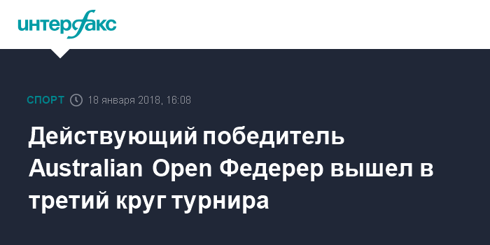 Москва. 18 января. INTERFAX.RU - Швейцарец Роджер Федерер завоевал путевку в третий круг Открытого чемпионата Австралии по теннису, турнира серии "Большого шлема" Australian Open.