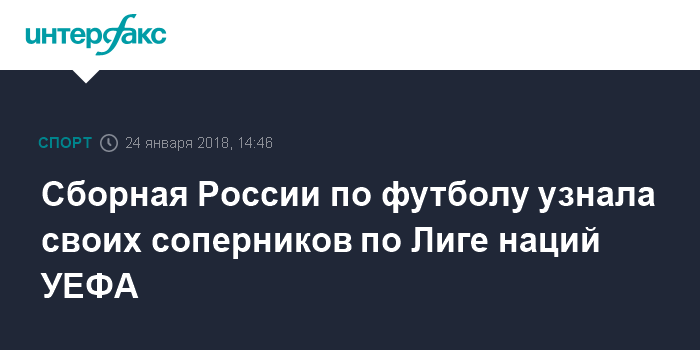 Москва. 24 января. INTERFAX.RU - Соперниками сборной России по футболу на групповом этапе Лиги наций УЕФА стали национальные команды Швеции и Турции.