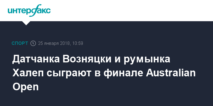 Москва. 25 января. INTERFAX.RU - Румынка Симона Халеп и датчанка Каролин Возняцки стали финалистками Открытого чемпионата Австралии по теннису в женском одиночном разряде.
