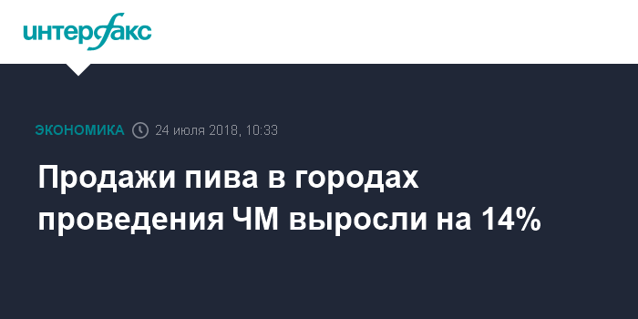 В июне в 11 городах проведения чемпионата продажи пива увеличились на 14,2%. Наибольший рост отмечался в Сочи (39%), Волгограде (31%), Калининграде (30%) и Казани (27%).