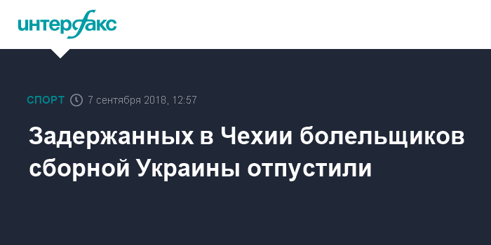 Москва. 7 сентября. INTERFAX.RU - Все восемь болельщиков сборной Украины, задержанные чешской полицией после матча Лиги наций 6 сентября, отпущены и смогут в пятницу вернуться на родину.