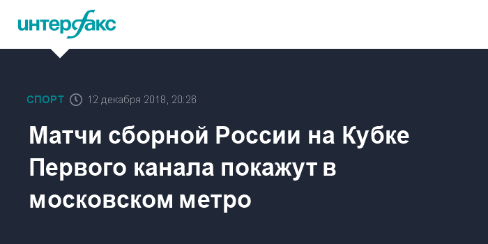 Москва. 12 декабря. INTERFAX.RU - Матчи сборной России по хоккею в рамках Кубка Первого канала, второго этапа Евротура, можно будет увидеть в прямом эфире в столичной подземке.