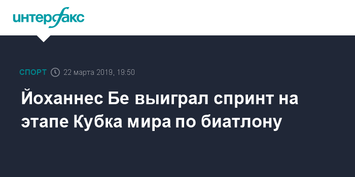 Йоханнес Бе выиграл спринт на этапе Кубка мира по биатлону