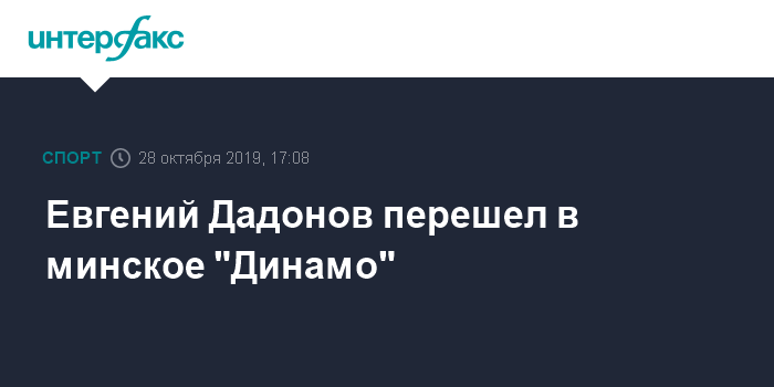 Москва. 28 октября. INTERFAX.RU - Минское "Динамо" подпишет контракт с нападающим Евгением Дадоновым, сообщает пресс-служба хоккейного клуба в понедельник.