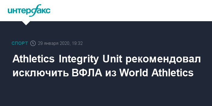 Москва. 29 января. INTERFAX.RU - Совет независимого легкоатлетического дисциплинарного органа Athletics Integrity Unit рекомендовал международной федерации World Athletics исключить Всероссийскую федерацию легкой атлетики из своих членов, если будут доказаны обвинения в адрес ВФЛА "по делу Лысенко", сообщает пресс-служба AIU.