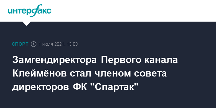 Замгендиректора Первого канала Клеймёнов стал членом совета директоров ФК "Спартак"