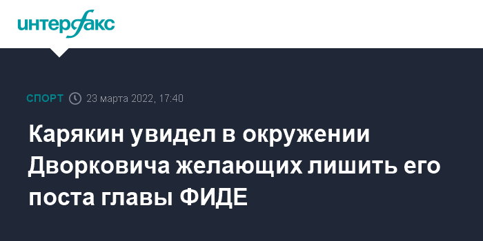 21 марта ФИДЕ дисквалифицировала Карякина за публичную поддержку спецоперации РФ на Украине.