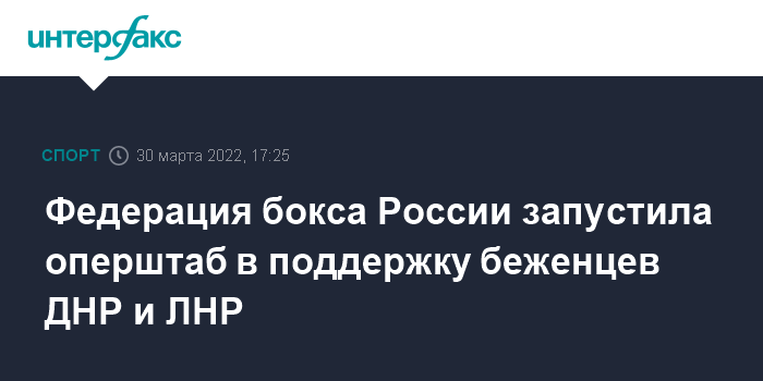 Москва. 30 марта. INTERFAX.RU -Федерация бокса России объявила о запуске оперативного штаба и горячей линии в поддержку мирного населения Украины и беженцев ДНР и ЛНР.