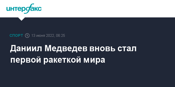 Москва. 13 июня. INTERFAX.RU - Российский теннисист Даниил Медведев вернулся на первую строчку в рейтинге Ассоциации теннисистов-профессионалов (ATP) после обновления данных.