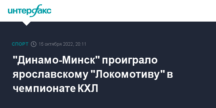 Москва. 15 октября. INTERFAX.RU - Хоккейная команда "Динамо-Минск" в субботу потерпела поражение от ярославского "Локомотива", сообщил в субботу олимпийский комитет Белоруссии.