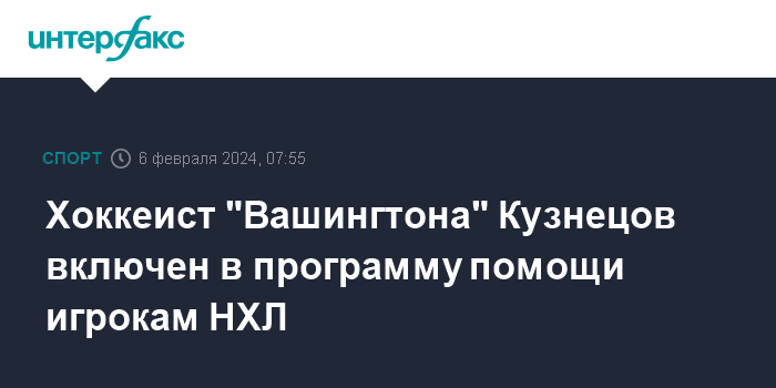 Хоккеист "Вашингтона" Кузнецов включен в программу помощи игрокам НХЛ