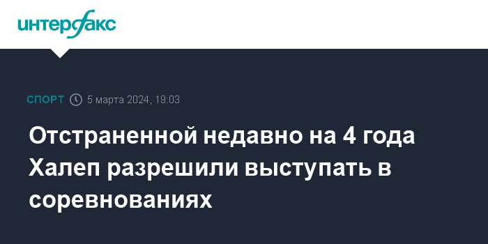 О наказании Халеп сообщалось в сентябре 2023 года: у нее был выявлено запрещенное вещество роксадустат. Кроме того, выявлены нарушения в биологическом паспорте Халеп. В связи с тем, что девять месяцев с тех пор уже прошло, наказание теперь считается отбытым, румынке разрешено участвовать в соревнованиях.