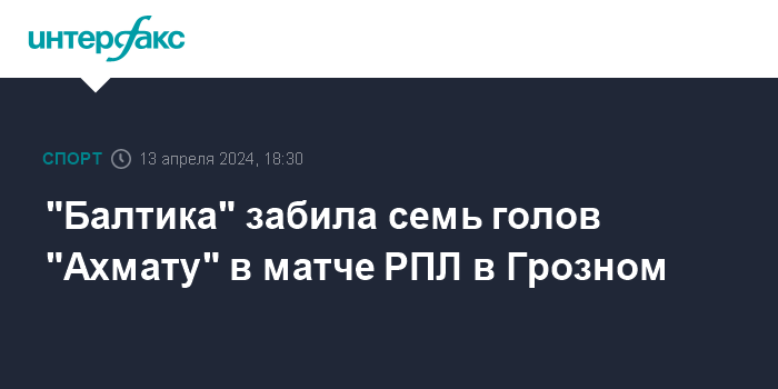 Москва. 13 апреля. INTERFAX.RU - Футболисты калининградской "Балтики" со счетом 7:1 разгромили грозненский "Ахмат" в матче 24-го тура чемпионата России.