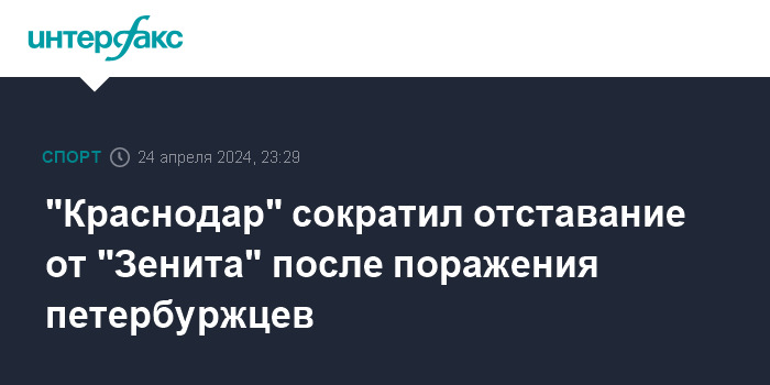 "Краснодар" сократил отставание от "Зенита" после поражения петербуржцев
